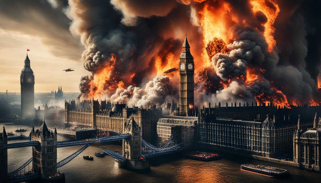 The Great Fire of London was a huge event that changed the city forever. It happened in 1666, burning a big part of the city center for four days. Thousands of buildings were destroyed, changing London’s look forever.
