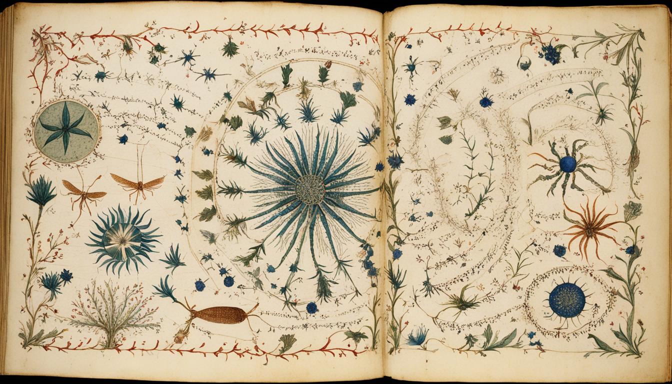 The Voynich Manuscript’s botanical pictures are truly eye-catching. They show a mix of real and imaginary plants. Botanists find these pictures hard to identify, sparking guesses about the book’s origins.