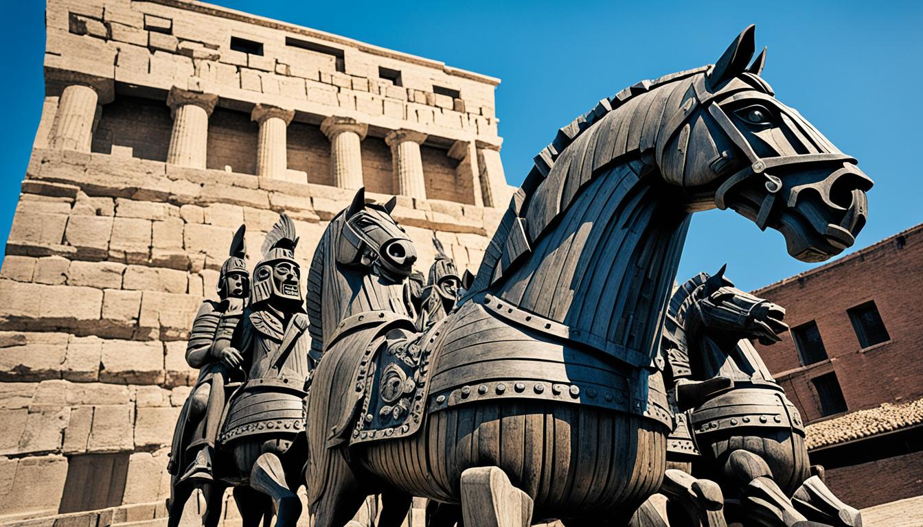 The story of the Trojan Horse has roots in Greek mythology. It combines the actions of gods and heroes into a thrilling tale. The horse is seen as a symbol of smart tactics and the strength of deception against strong defenses.